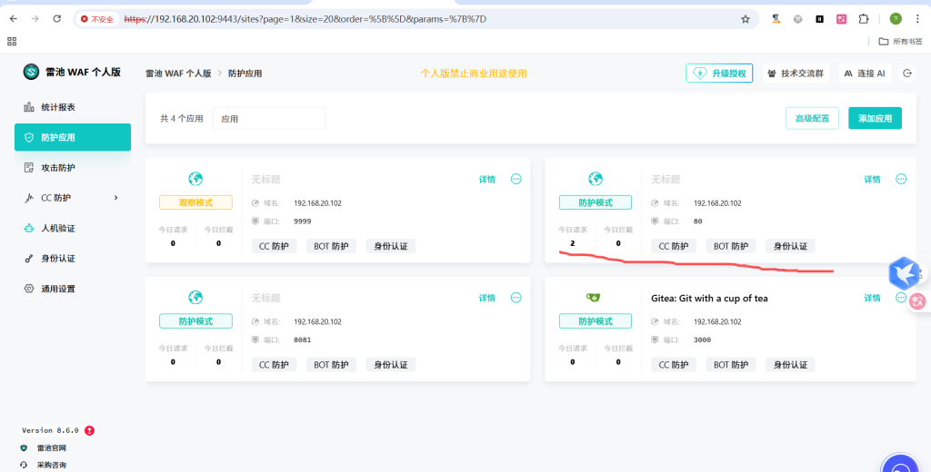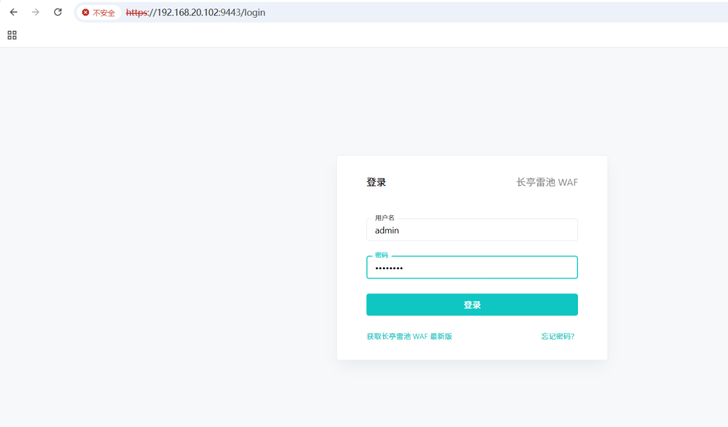 登录WAF,https://192.168.20.102:9443/ admin/VF6NXMs7