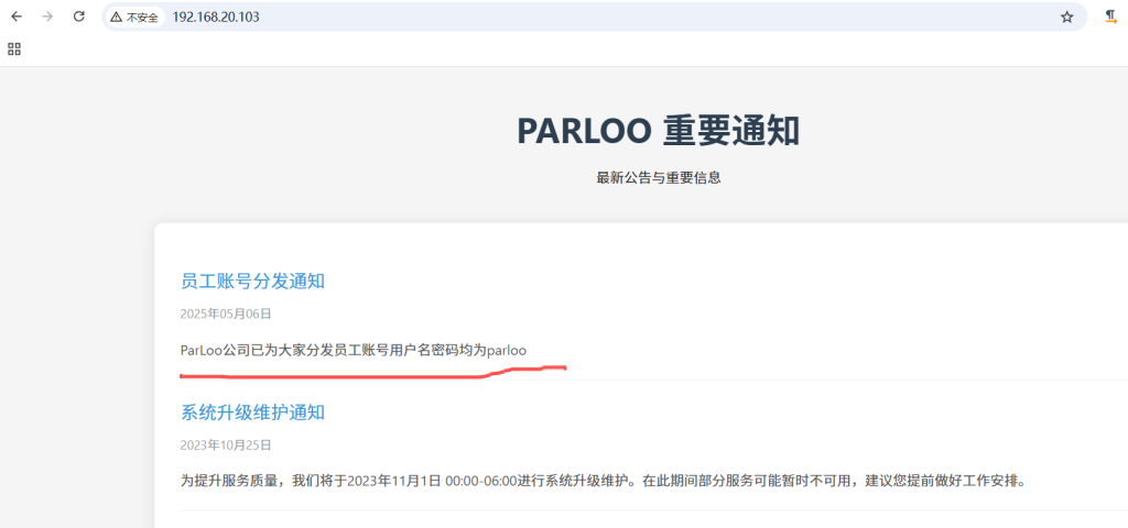 打开server1的机子,打开管理面板,其中管理着两个web网站,其中一个写了员工账户密码,猜测parloo密码为parloo