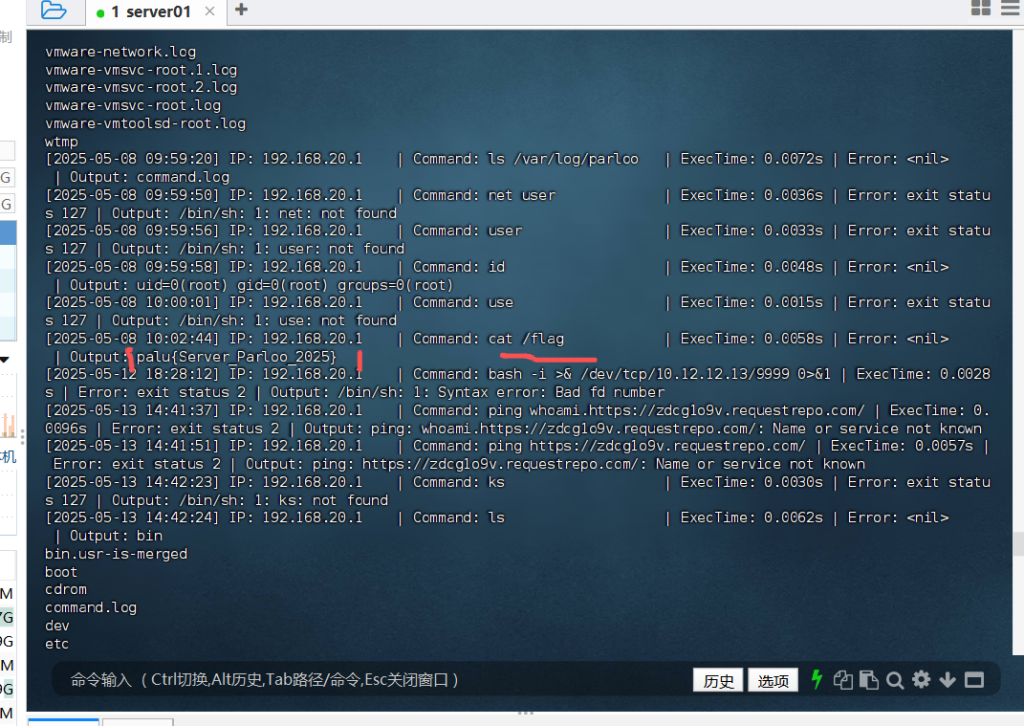 | Server01 | 192.168.20.103 | ubuntu/Skills@server | http://192.168.20.103:16303/9bbe149955 c394c5de46/e36c392092 http://192.168.20.102:3000/ admin@qq.com/未知 |