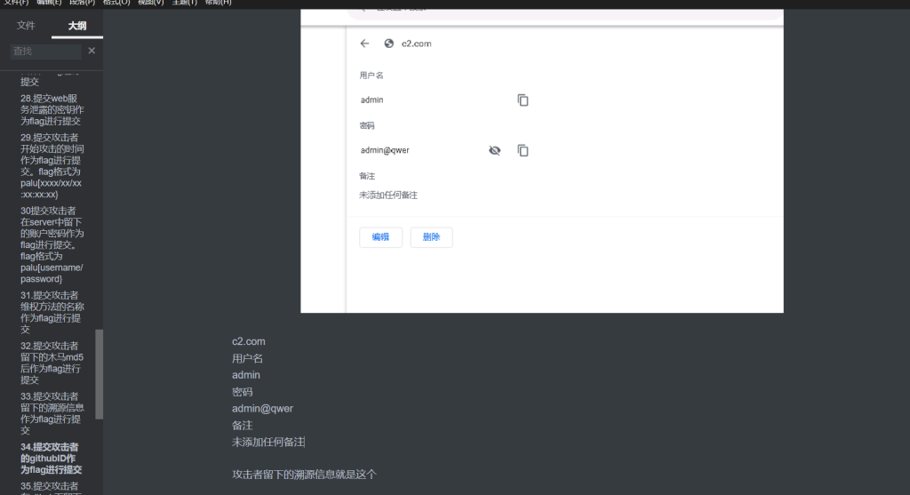 47.提交恶意c2的服务器登录的账号密码作为flag进行提交。flag格式为palu[username/password}